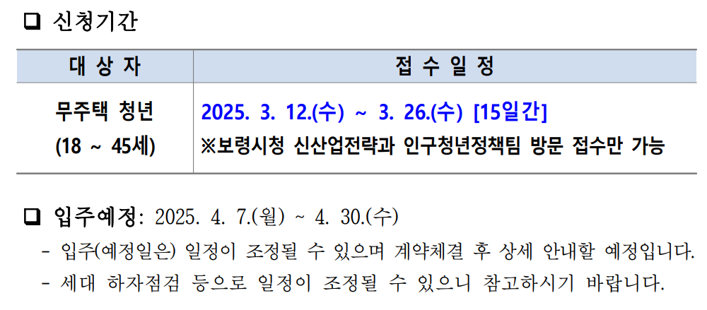 입주 예정은 4월 7일 부터 시작합니다. 대상자에 해당되시는 분들은 지금 즉시 신청이 필요합니다.