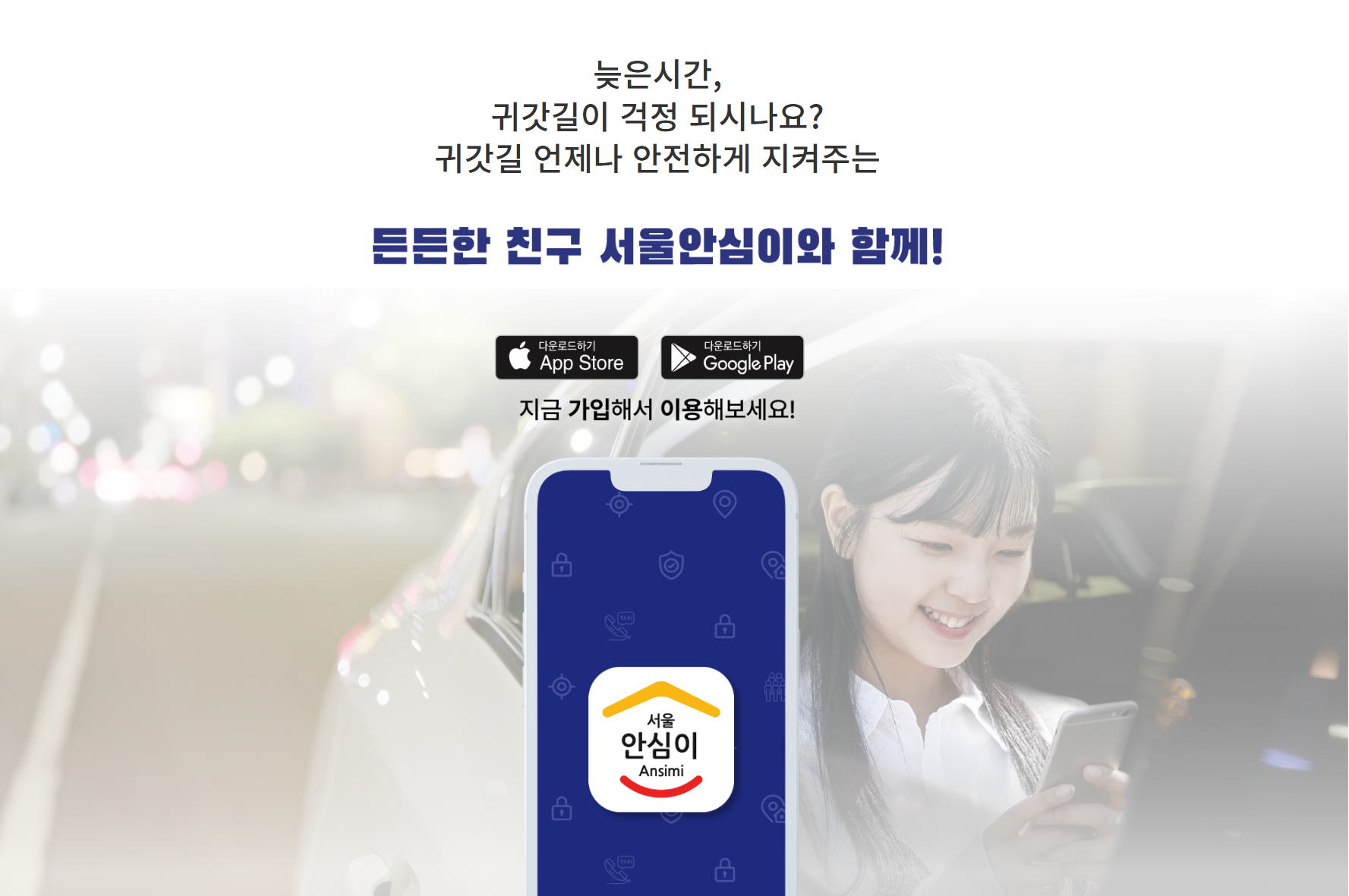 서울시 ‘안심이앱’은 플레이스토어, 앱스토어, 원스토어에서 무료로 다운로드 가능합니다.