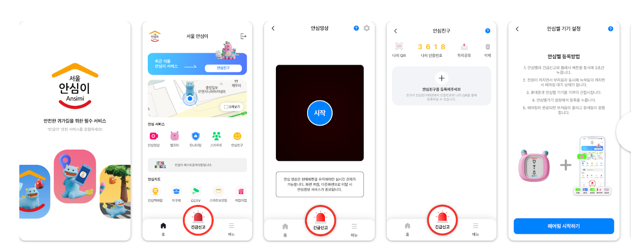 ‘안심이앱’은 서울시와 자치구 CCTV 관제센터가 협력하여 운영하는 24시간 안심귀가 지원 앱입니다. 위급 상황 발생 시 앱을 통해 긴급 신고하면 사용자 주변 CCTV 화면을 실시간으로 관제하고 경찰 출동까지 지원하고 있습니다.