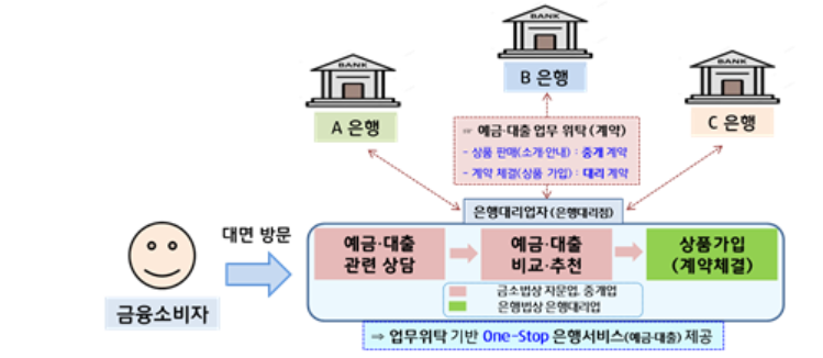 이는 우체국, 편의점 등 은행이 아닌 곳에서도 계좌 개설, 입출금, 예금·대출 상품 가입 등 은행의 핵심 업무를 대행할 수 있도록 하는 제도입니다.