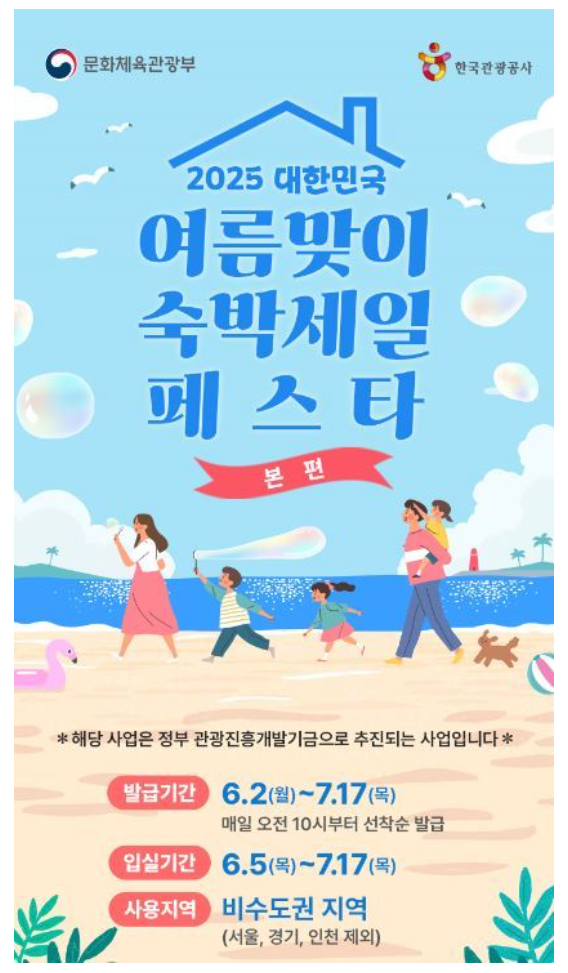 다가오는 여름휴가 시즌, 국내 여행을 계획하고 있다면 절대 놓쳐서는 안 될 초특급 이벤트가 있습니다. 바로 문화체육관광부와 한국관광공사가 추진하는 '2025 대한민국 숙박세일페스타'입니다.