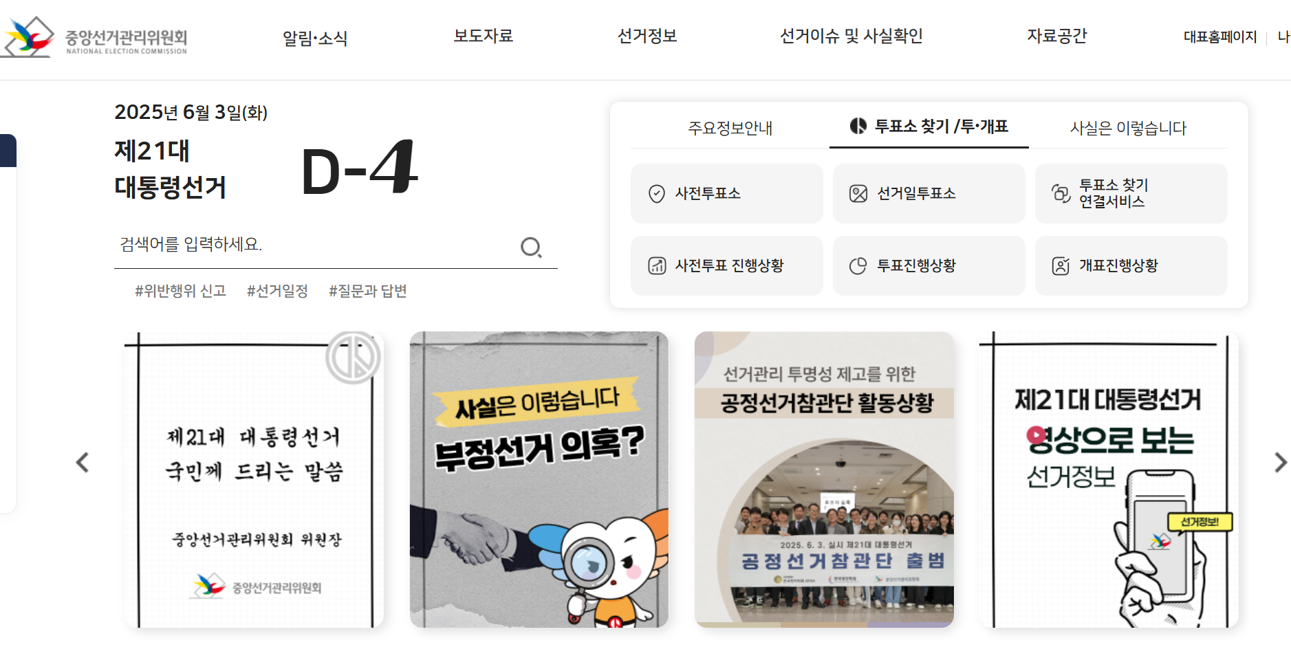 제21대 대통령 선거의 **본투표일은 2025년 6월 1일(일)**입니다. 사전투표에 참여하지 못한 유권자는 아래 사항을 참고하여 반드시 본투표에 참여하시기 바랍니다.